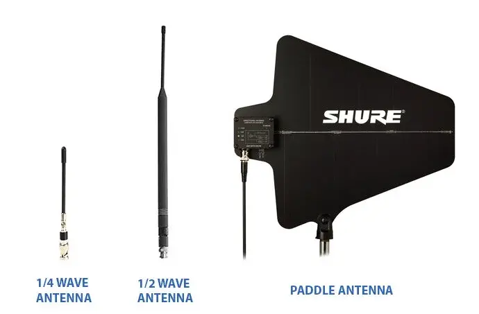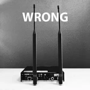 1. Use the correct antenna: Most pro-audio wireless receivers ship with a ½ wave omnidirectional antenna. It’s a thick, rubbery antenna with a wider base that tapers to a much smaller diameter about half way along its length. They get their name from the fact that the physical length of the antenna is ½ the wavelength of the frequency it’s used for. A 500MHz antenna is about .3 meters or about 12 inches long. A ¼ wave antenna, as you would expect, is half that length. They’re omnidirectional, meaning they receive signal equally from all sides, and therefore should be placed fairly closely to the transmitter.